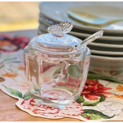 Açucareiro de Vidro com Colher Butterfly 8,5x8,5x11cm