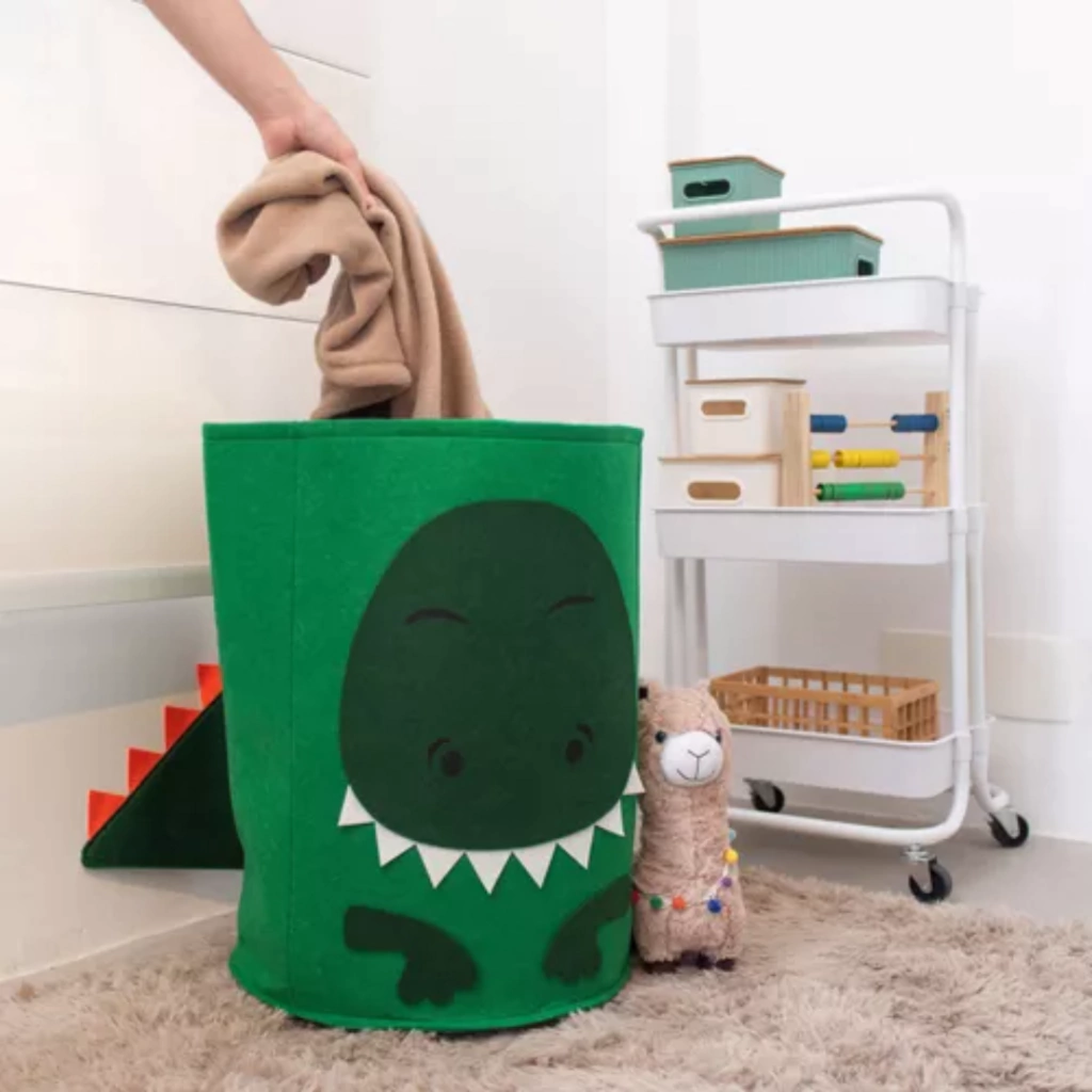 Cesto Organizador Redondo Infantil de Feltro Dinossauro 54x40x65cm