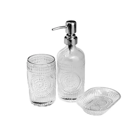 Kit Para Banheiro Porta Sabonetes Escovas Vidro Lux Cromado 3 Peças