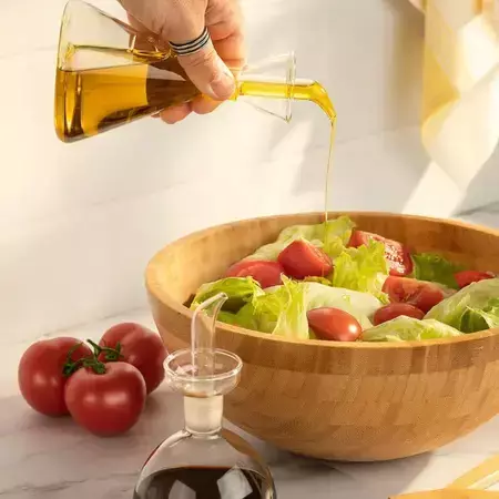 O Galheteiro Triangular de Vidro Borossilicato 250ml Oikos possui bico dosador e coletor na borda, pensado para manter o vidro sempre limpo. Esse sistema impede que o líquido escorra e faça bagunça na sua mesa.