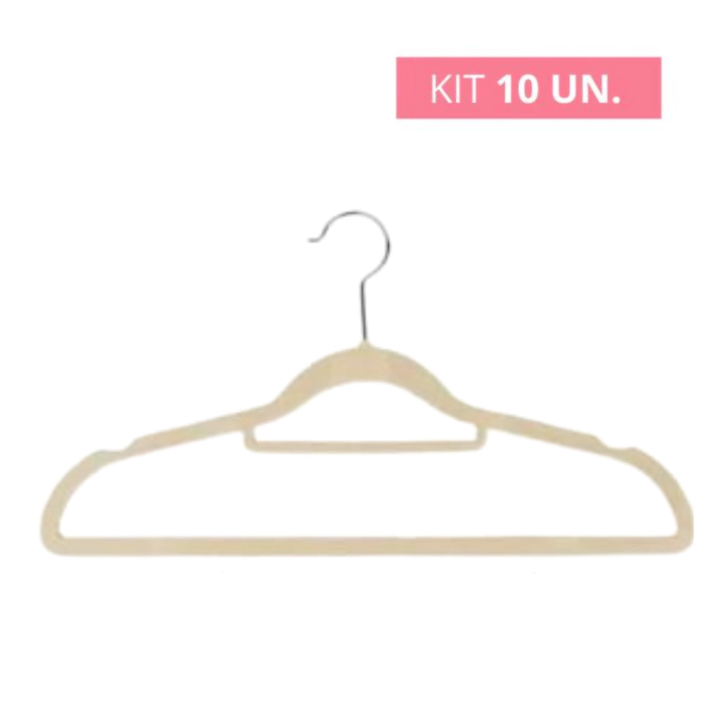 Kit com 10 Cabides de Veludo Adulto Com Gravateiro Creme