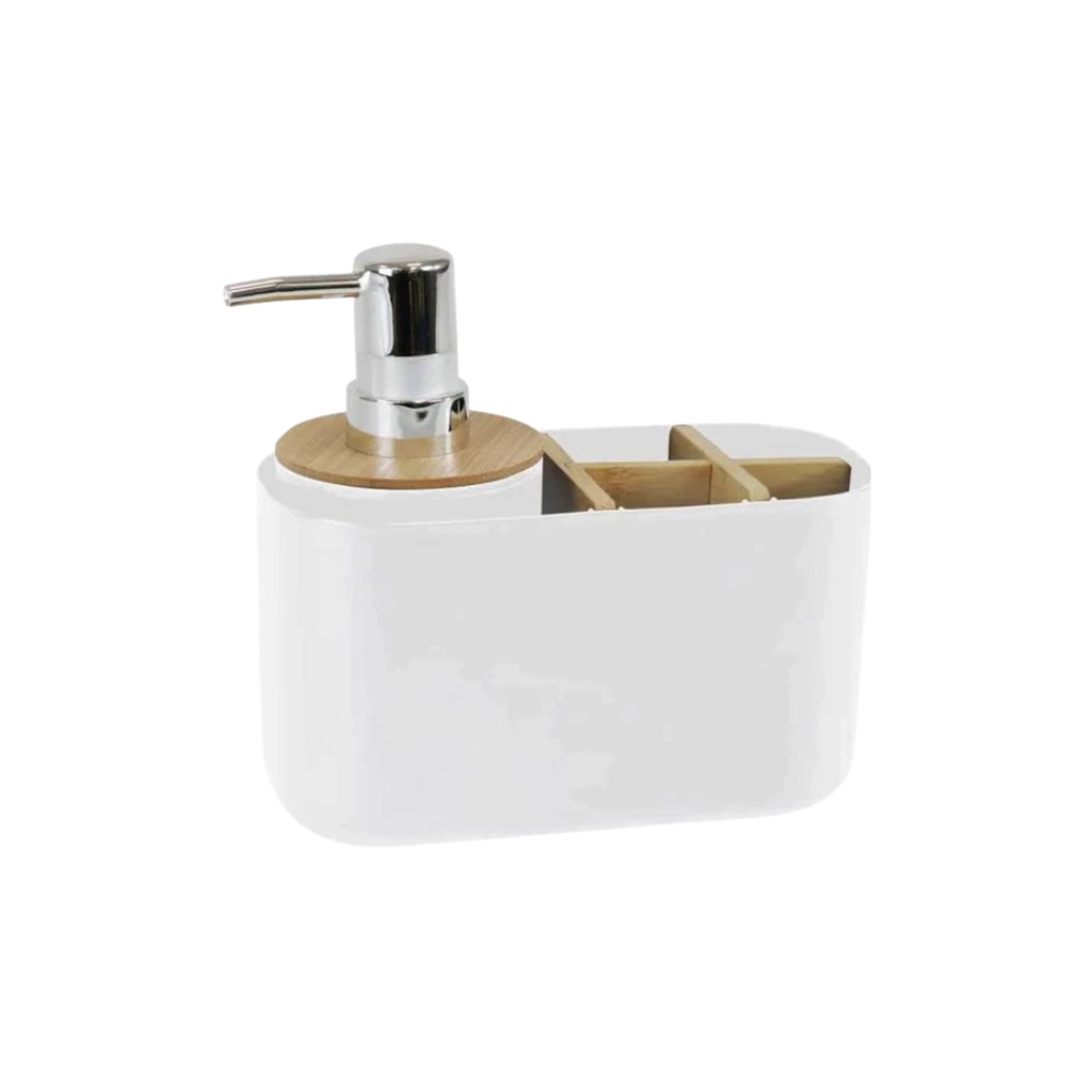 Kit Organizador de Banheiro com Dispenser 280ml Branco/Bambu Mood