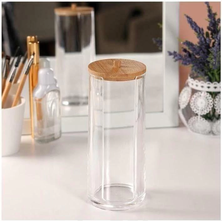 Organizador de Acrílico para Discos de Algodão com Tampa de Bambu